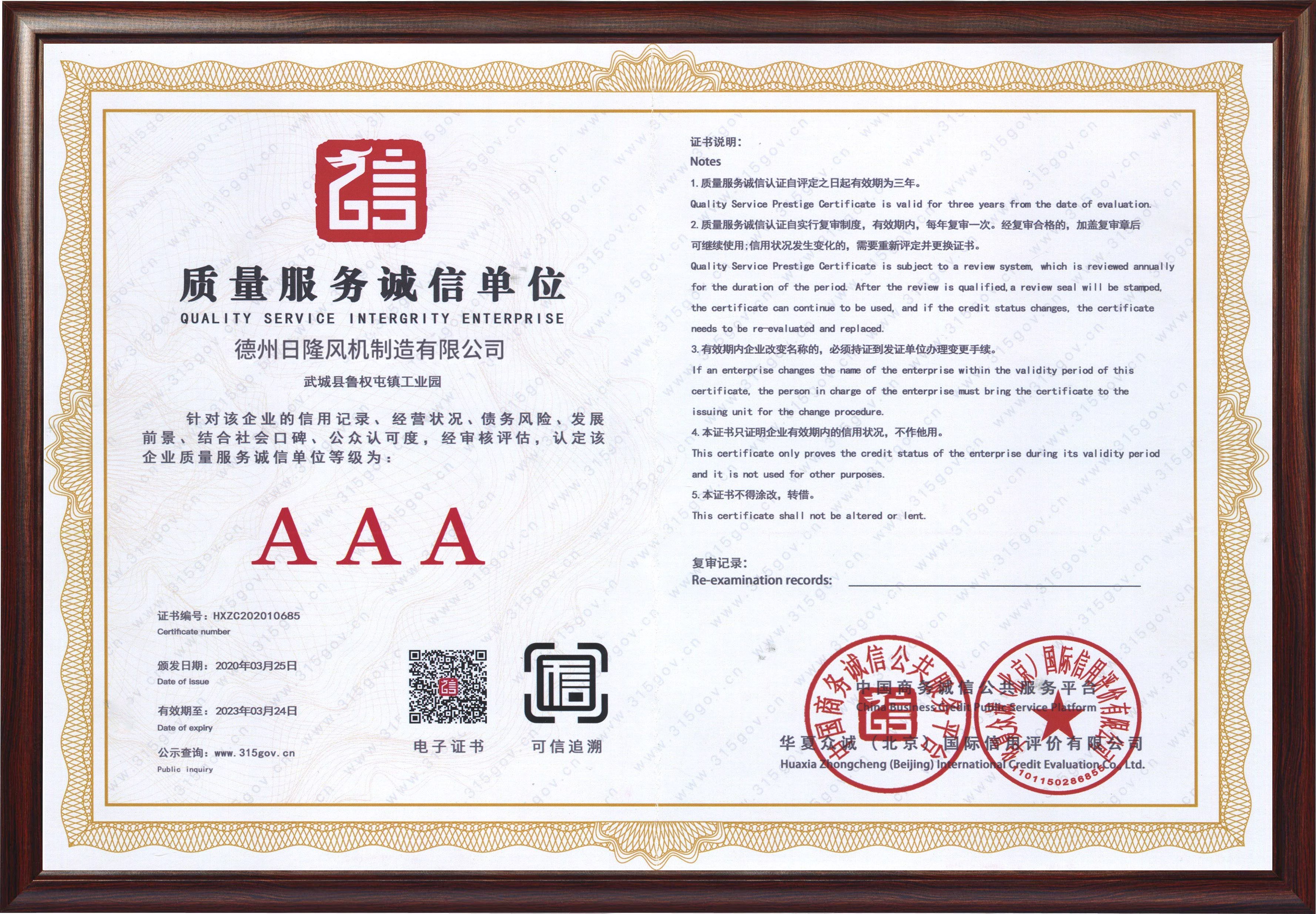 日隆風(fēng)機(jī)資質(zhì)
