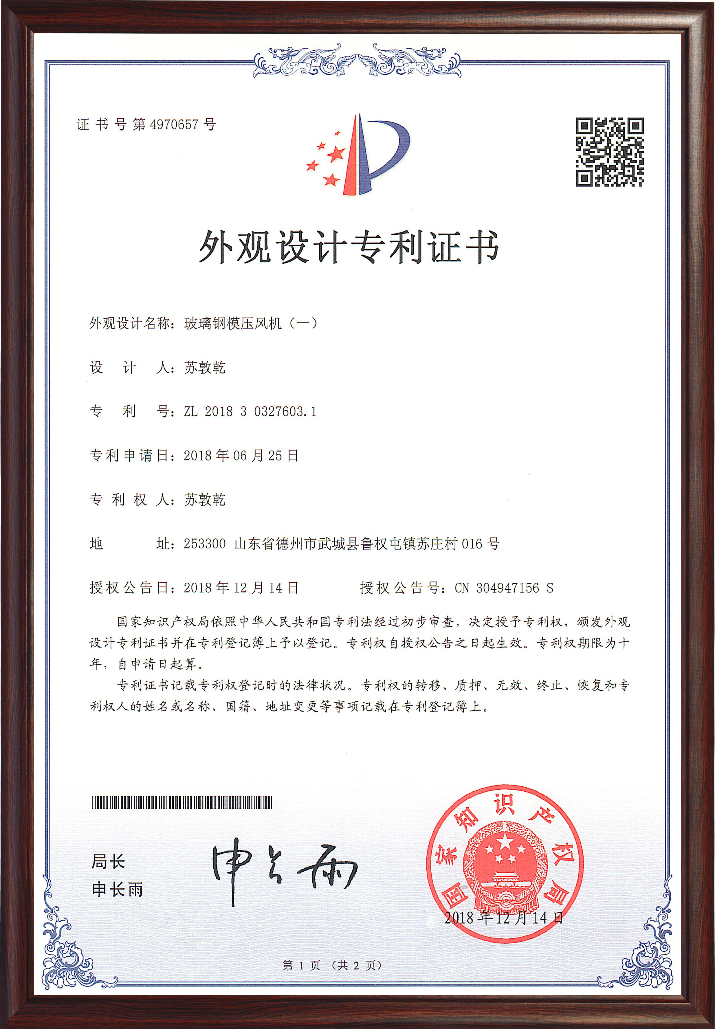 專利證書(shū)
